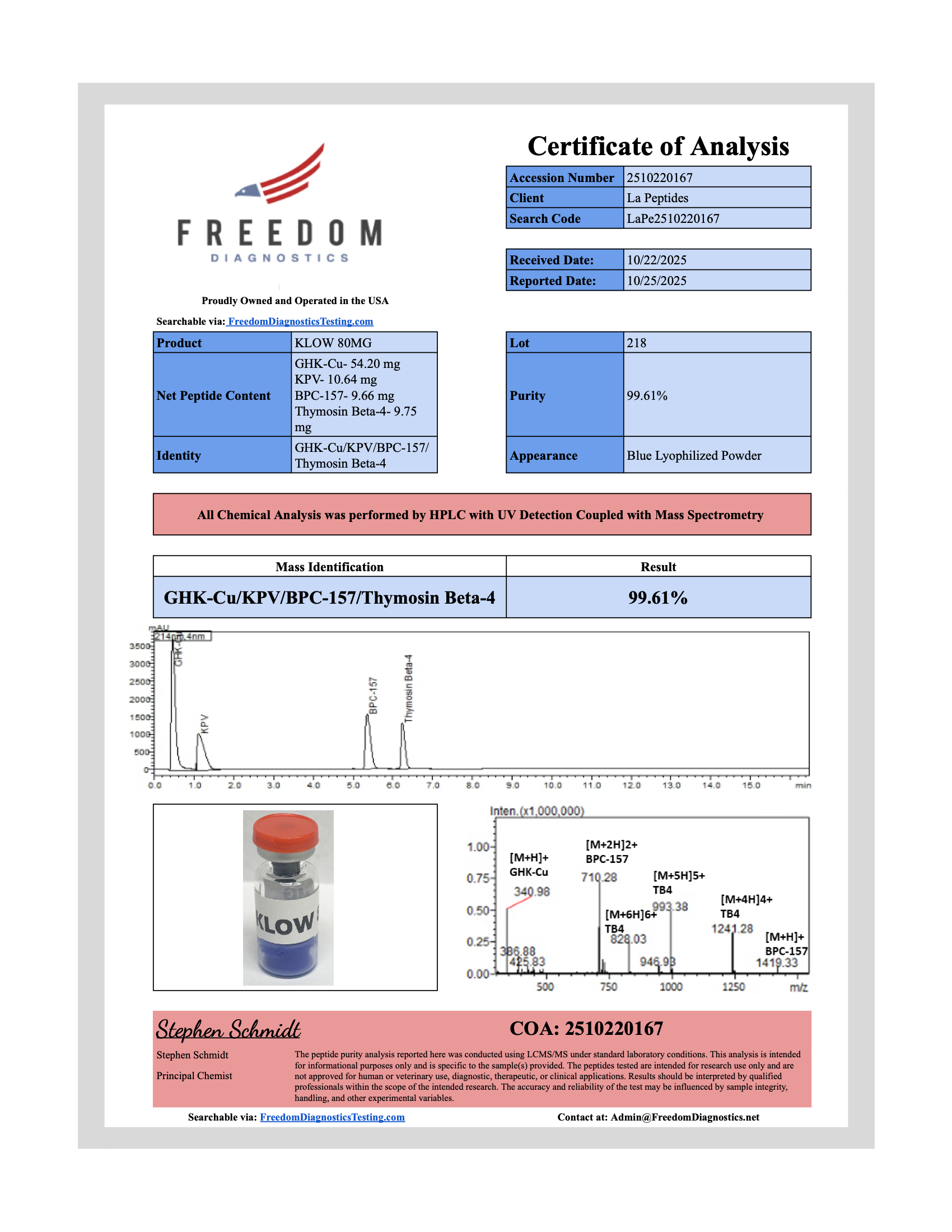 As a composite, KLOW allows single-run, side-by-side evaluation of endpoints tied to copper coordination chemistry, cytoskeletal regulation, peptide fragment biology, and general peptide structure–activity relationships. All usage is limited to laboratory research, with no claims of safety, efficacy, or human application inferred from these identifiers [1][2][3][4].