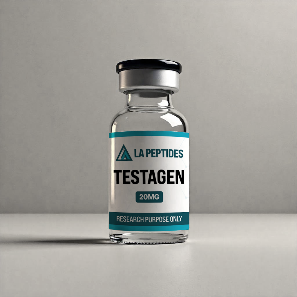 Testagen is a synthetic peptide complex composed of short amino acid sequences derived from organ-specific peptide fractions. Supplied as a 20 mg lyophilized preparation, it is intended strictly for laboratory research use. This compound is utilized in experimental models investigating gene expression, cellular signaling pathways, and peptide–DNA interactions under controlled in vitro conditions.